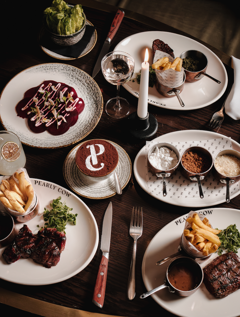 Our 1kg salt-aged Côte de Boeuf served with peppercorn, chimichurri and Béarnaise sauce, glazed onions, herb crumbed bone marrow.